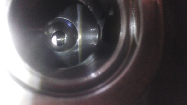 Fotografía: Lumbrera de alimentación del cilindro por la que se ve la ranura vertical del émbolo .